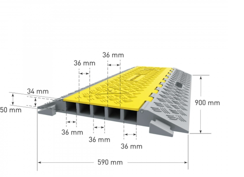 The TRAFFIC-LINE Cable/Hose Protection Ramp provides protection to cables and hoses from damage by vehicles and pedestrians. Designed to withstand passenger and HGV traffic, but not suitable for high point load traffic.